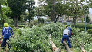 しかも立地的に高所作業車、重機が使えないので、作業員が登り木を細かく刻んで安全を最優先に作業しました。