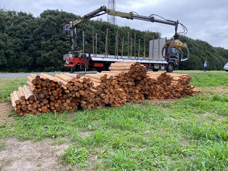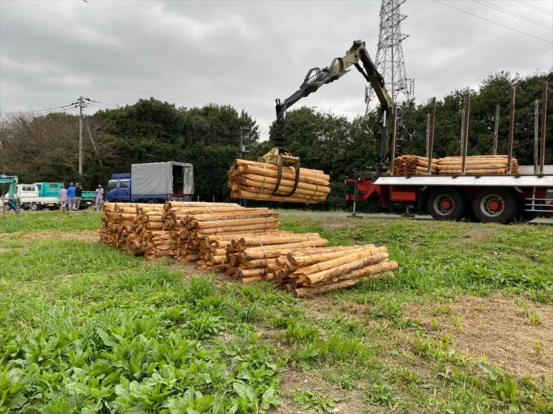 埼玉県久喜市土木工事現場松杭配達納品 土木用木材 2021.10.29 埼玉県久喜市土木工事現場松杭配達納品 栄和林業では草刈作業・雑草搬出・土木資材の加工・現場までの納品も承っております。お見積りは無料です。お気軽にお問い合わせください。