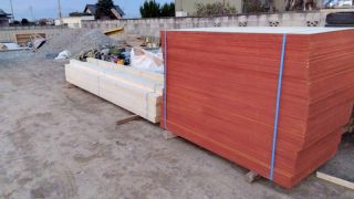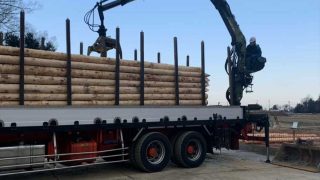 埼玉県南埼玉郡宮代町の工事現場まで土木木材・松杭・枕木納品搬入