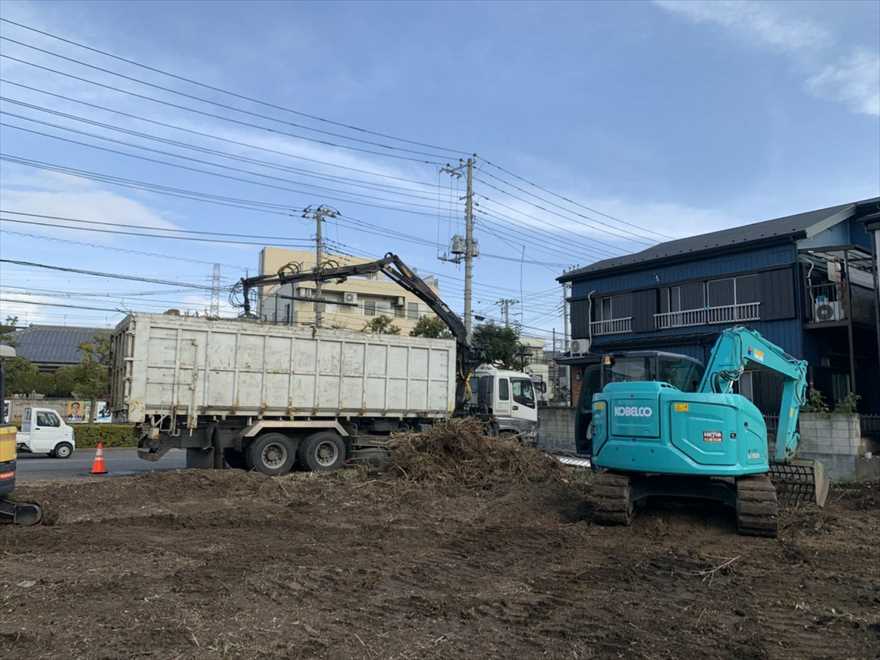 伐採作業現場は住宅街の中での作業だった為通行人への配慮、抜根時の砂ぼこりが極力飛散しないよう作業致しました。