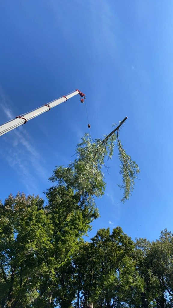 クレーン車での吊り伐採を行いました。