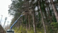 高所作業車を使って安全第一に枝おろしを行い無事に作業完了いたしました。